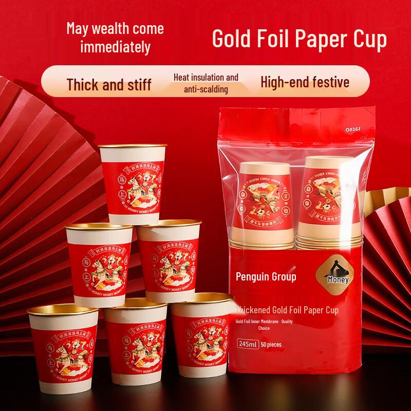 Penguin Group National Trend Year of the Horse Red Gold Foil Paper Cups — cumpără ieftin în cadrul magazinului online Joom