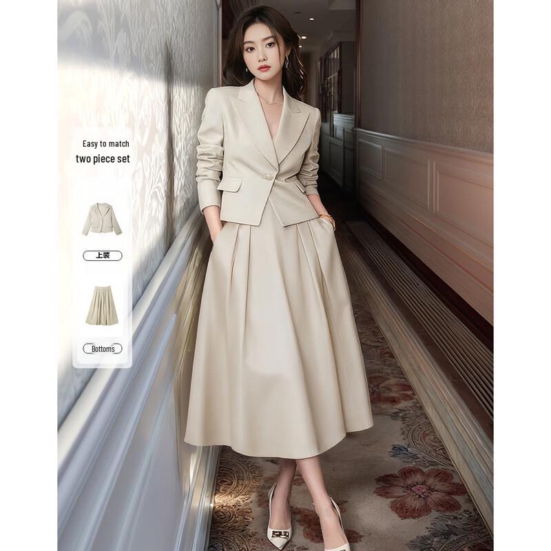 Women's Quiet Luxury Suit Jacket & A-Line Skirt Set