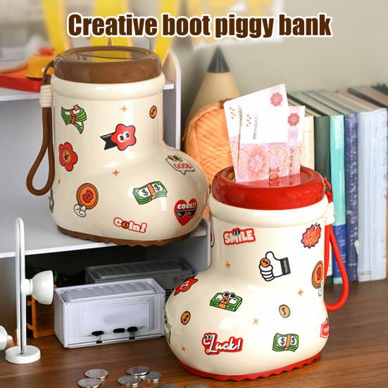 Cartoon Boot Piggy Bank with DIY Sticker Coin Cash Container Toddlers Boys Girls Money Saving Box Home Office Desktop Decoration