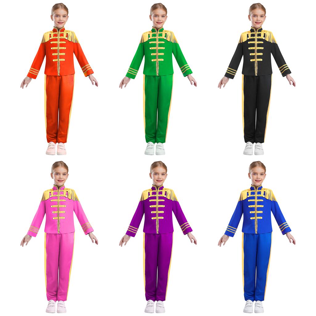 Kids 1960s British Star Costume Long Sleeve Gold Lace Decoration Fringe Rock Band Musician Shirt Pants Set — cumpără ieftin în cadrul magazinului online Joom