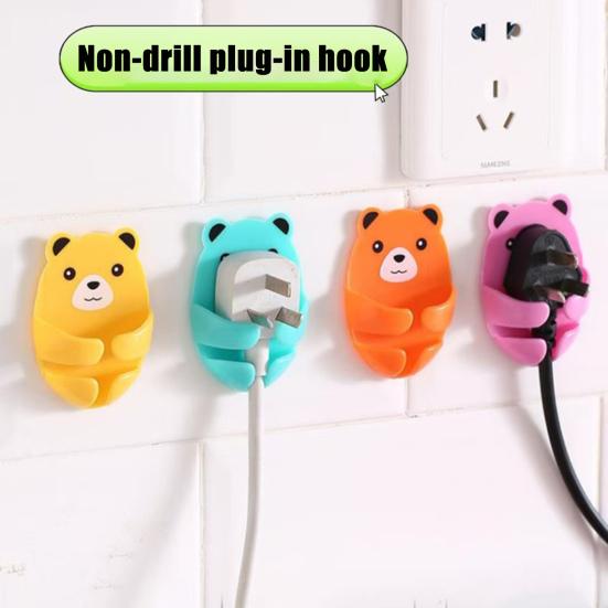 Cute Bear Plugs Holders Adhesive Wall Hook Plastic Phone Charger Holders No Drilling Needed Wall Mounted Organizer for Plugs Charger Storage
