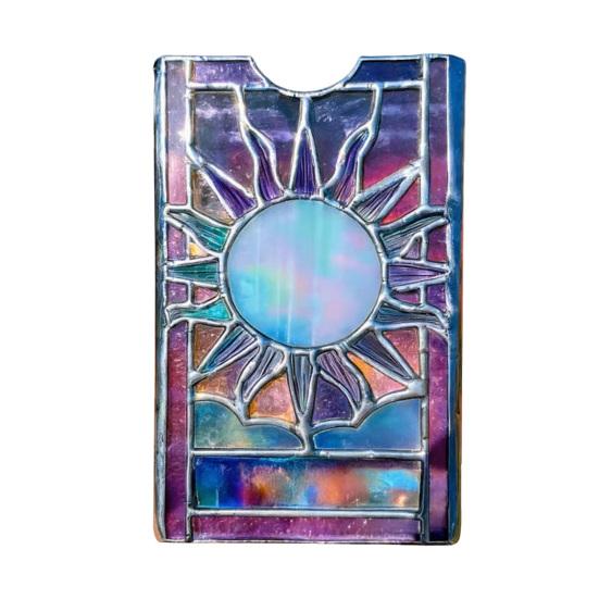 Stained Glass Tarot Deck Case Mystical Sun And Moon Tarot Card Holder Handcrafted Tarot Storage Protector for Standard Size Playing Cards