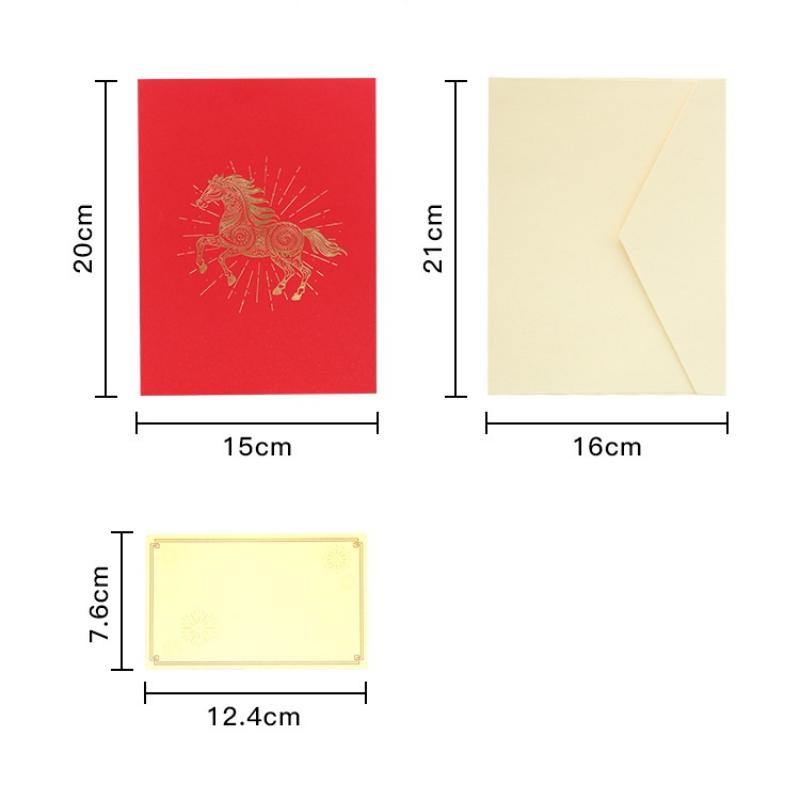Felicitare 3D Anul Nou Lunar 2026 cu Design Cal Auriu Include Felicitare și Plic Simbolizând Noroc și Bogăție