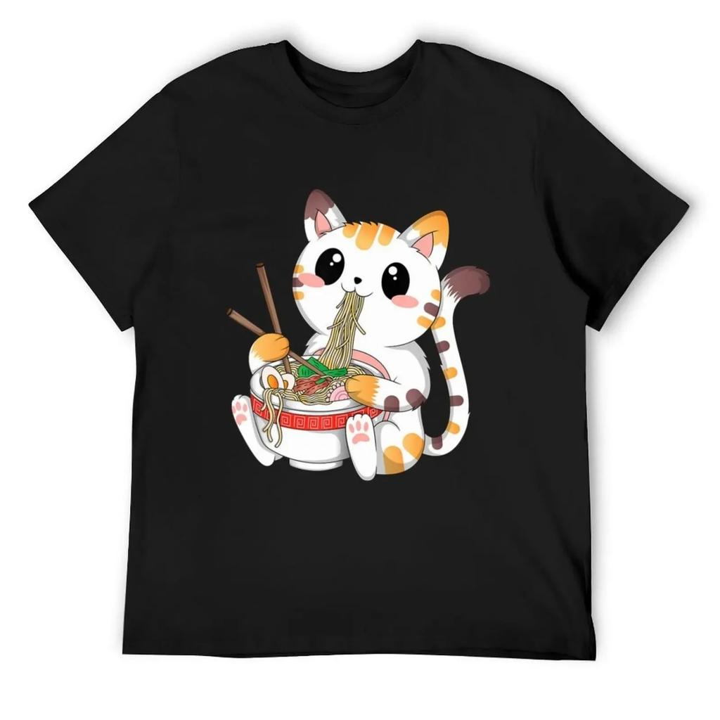 Cute Kawaii Cat Ramen Noodles Anime Neko Japanese Aesthetic T-Shirt sweat anime t shirts fruit of the loom mens t shirts — cumpără ieftin în cadrul magazinului online Joom
