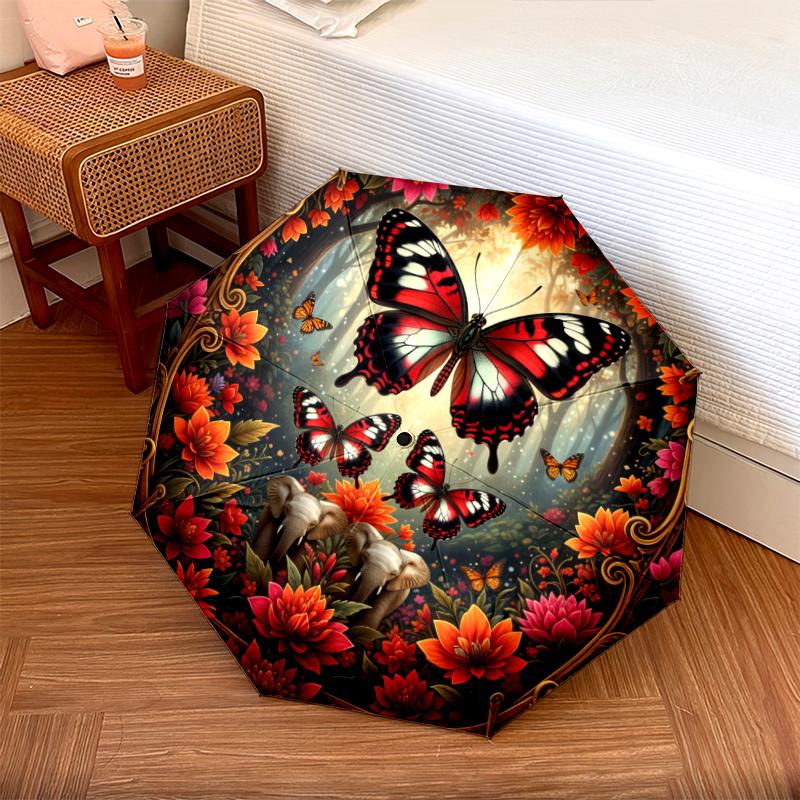 1 PC Automatic Folding Umbrella - 3D Butterfly Pattern, Portable & Foldable Design with 8 Ribs, Christmas Birthday Gifts