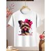 European sizes Girls' Yorkshire Terrier Puppy T-Shirt - Soft Summer Top with Yorkie Dog & Bow Print, Round Neck Casual Blouse for