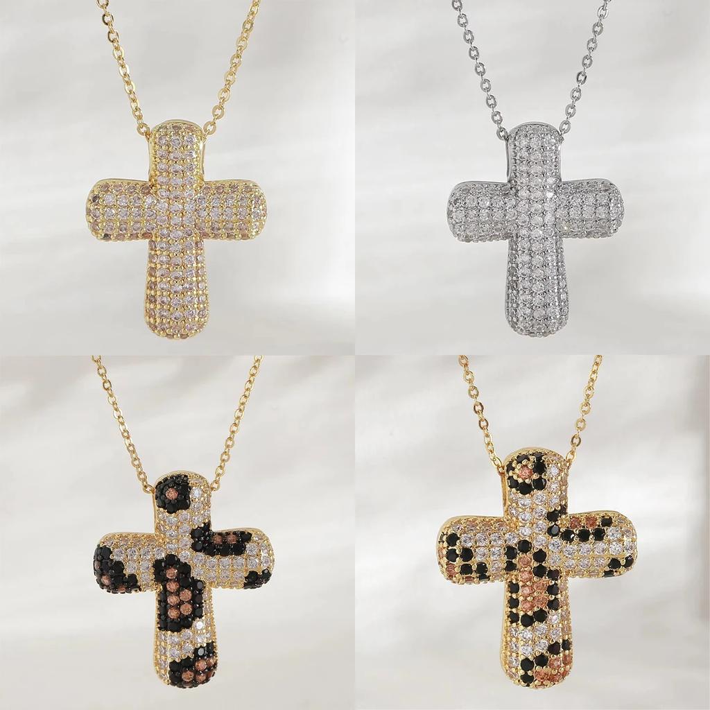 MHS.SUN Luxury Zircon Bubble Cross Pendant Necklace for Women Men Fashion Gold/Silver Color Religious Crosses Jewelry Gift