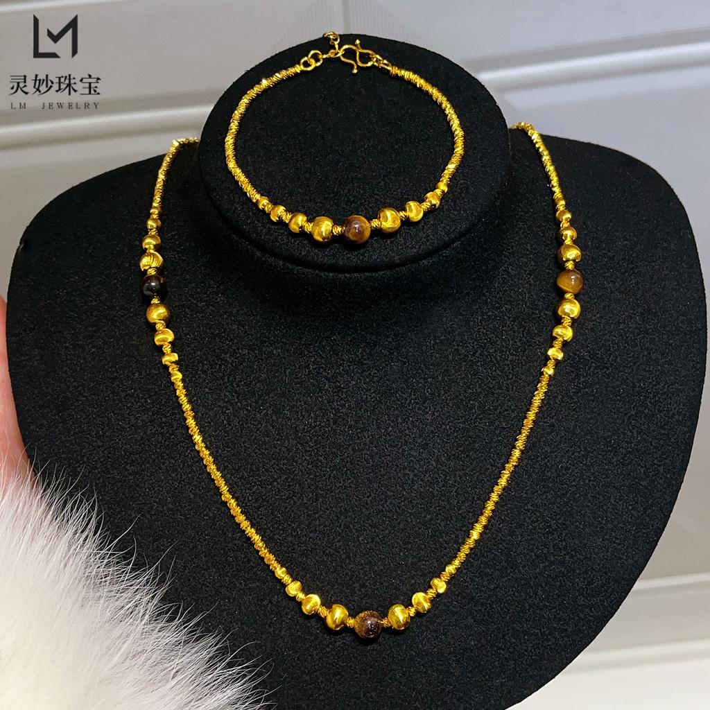 Cat Eye Fortune Bead Necklace & Bracelet Women's 24K Gold AU999 -Light luxury cat eye style, low-key glittering, for office days