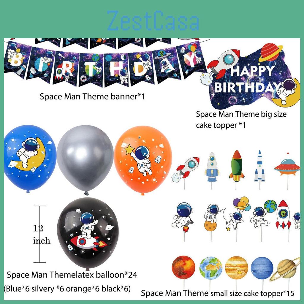 Astronaut Rocket Space Theme Children Birthday Party Decor Set Paper Handmade Mechanical Scene Props Mix 24 Balloons