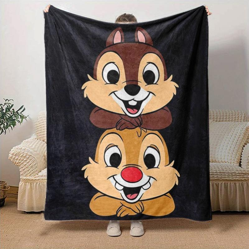 1pc, Disney Chip 'n Dale Throw Blanket Cute Cartoon Animal Decorative Couch Cover for Home, Living Room, Bedroom, Travel, Camping, Car