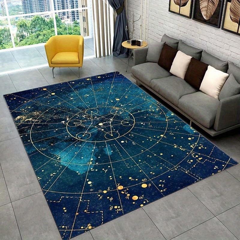 Starry Sky Constellation Rug - Large Area Rugs for Living Room, Blue Galaxy Carpet with Zodiac Signs, Modern Home Decor