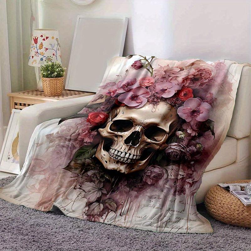 1pc Skull & Blooms Blanket Seasonal Universal Home Decorative for Room, Living Room, Travel, Camping, Car Blankets