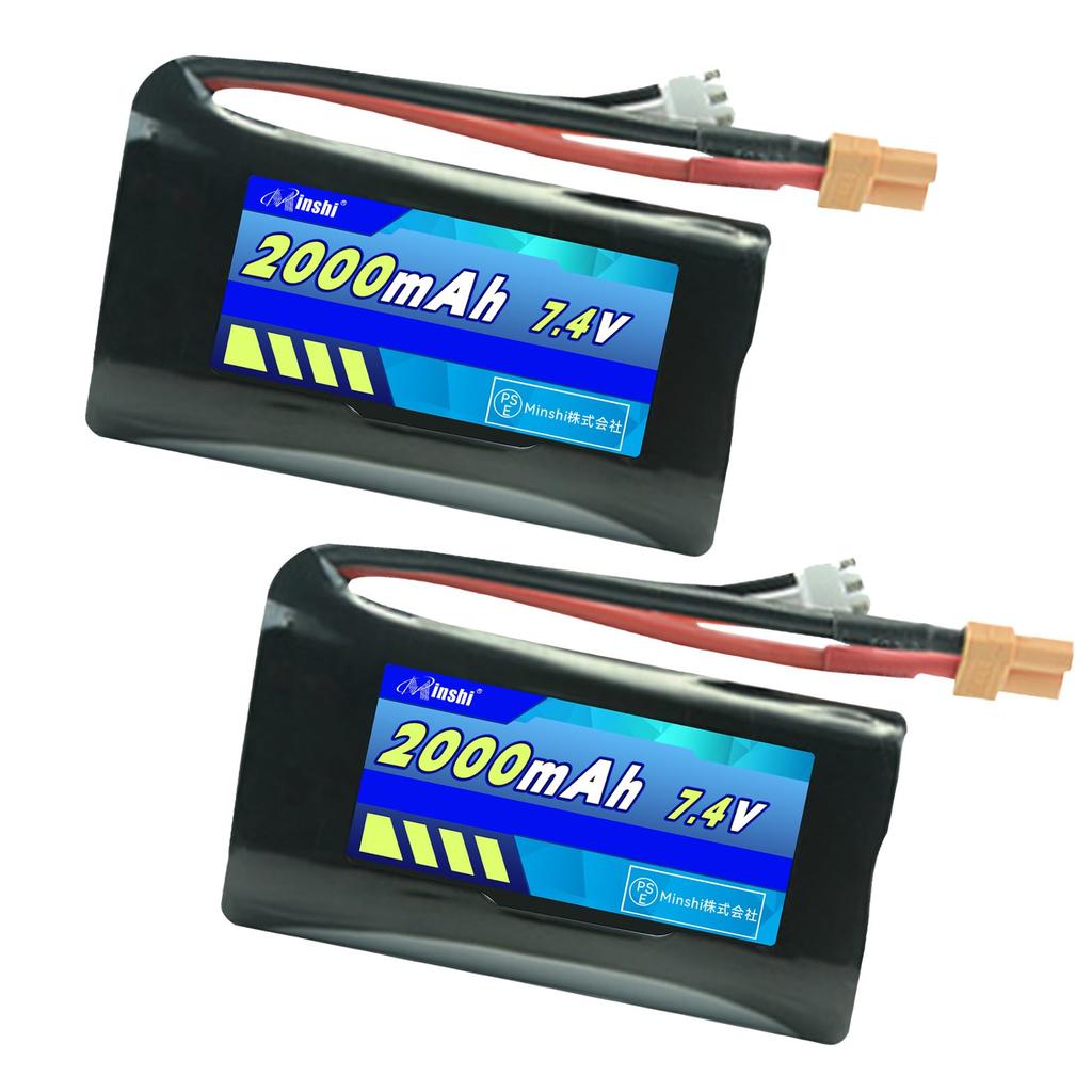 MINSHI Celeb 7.4V 2000mAh LiPo Battery (Set of 2) with XT30 Plug, Compatible with RC Cars, RC Trucks, RC Helicopters, FPV Drones, etc., 683618mm,