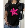 European Size Women's White Polyester T-Shirt with Pink Star Graphic - Casual, Comfortable, and Versatile for Home — cumpără ieftin în cadrul magazinului online Joom