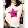 European Size Women's White Polyester T-Shirt with Pink Star Graphic - Casual, Comfortable, and Versatile for Home
