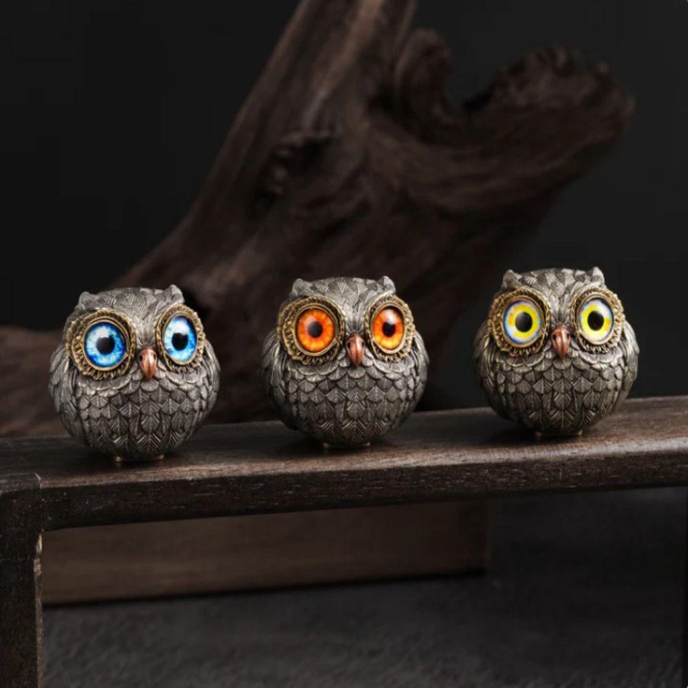 Lucky Owl Owl Mini Statue Realistic Owl Ornament Creative Owl Figurine Beads Desktop Decoration