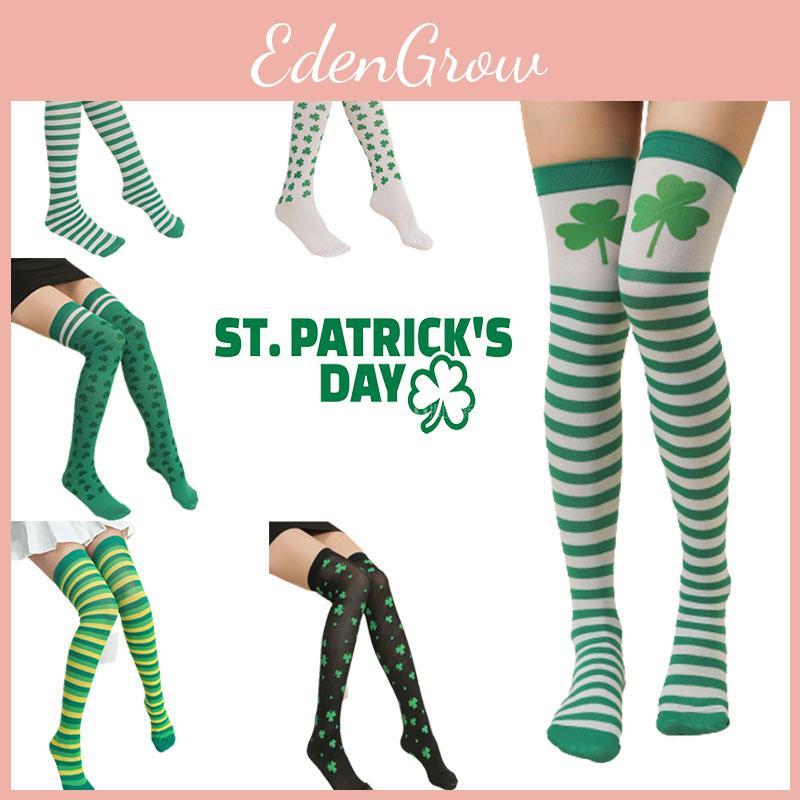 Women St. Patrick's Day Thigh High Striped Shamrock Socks Over Knee Stockings