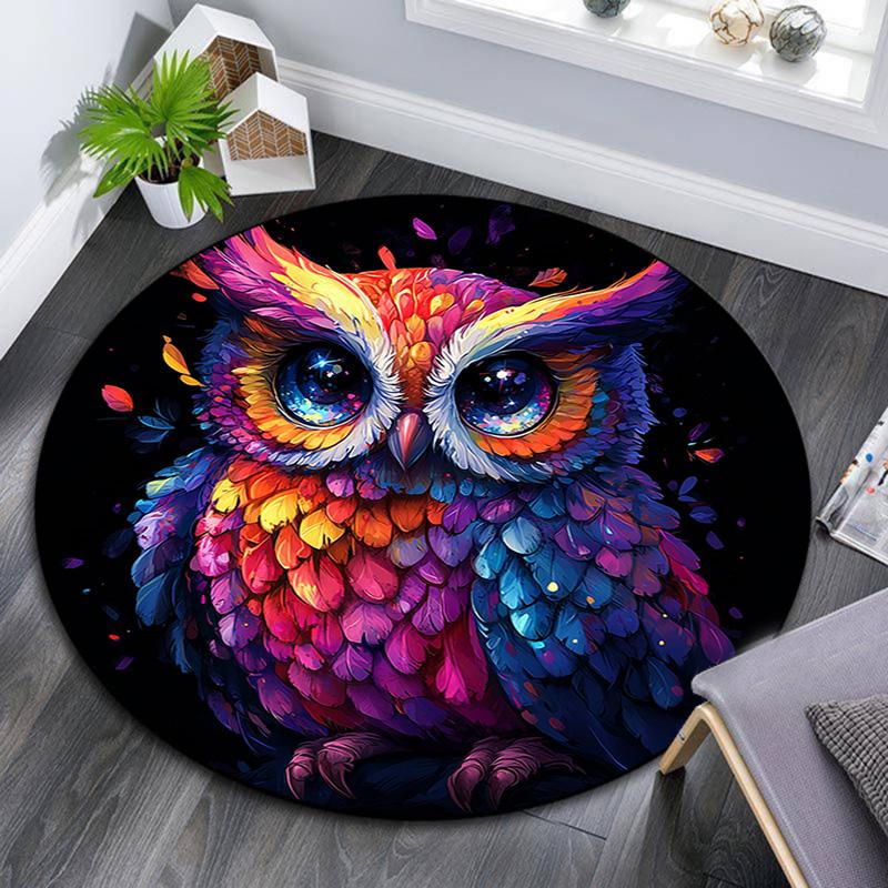 Owl Artwork Round Area Rug,Carpet Rug for Living Room Bedroom Sofa Playroom Decor,Non-slip Floor Mat