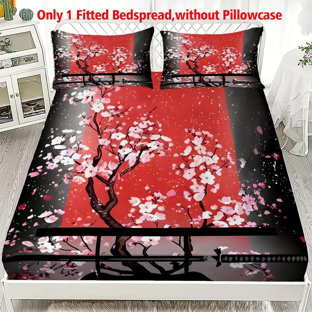 1pc Fitted Sheet Japanese style Cherry Blossoms Polyester Durable Bedding Set Sheet for Home Bedroom Decoration Birthday Gift