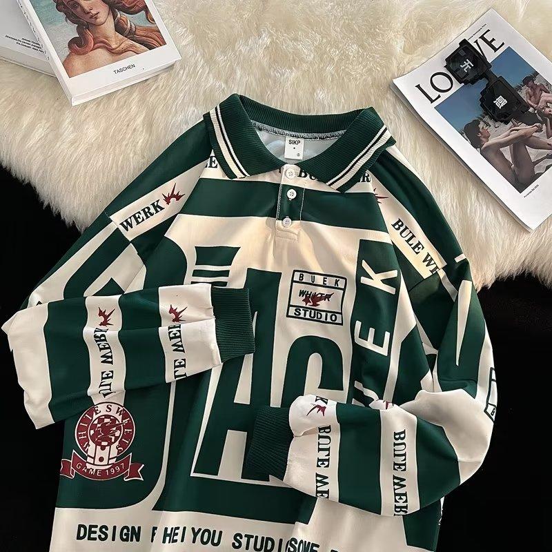 American High Street Polo Neck Sweater Men'S Spring New Thin Niche Retro Hiphop Long-Sleeved Top