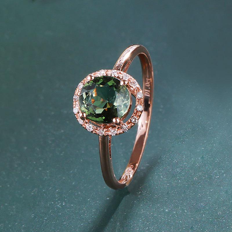 Rose Gold Plated Russian 585 Purple Gold Colored Treasure Brazilian Tourmaline Green Sparkling Ring Set With Zircon Jewelry — cumpără ieftin în cadrul magazinului online Joom