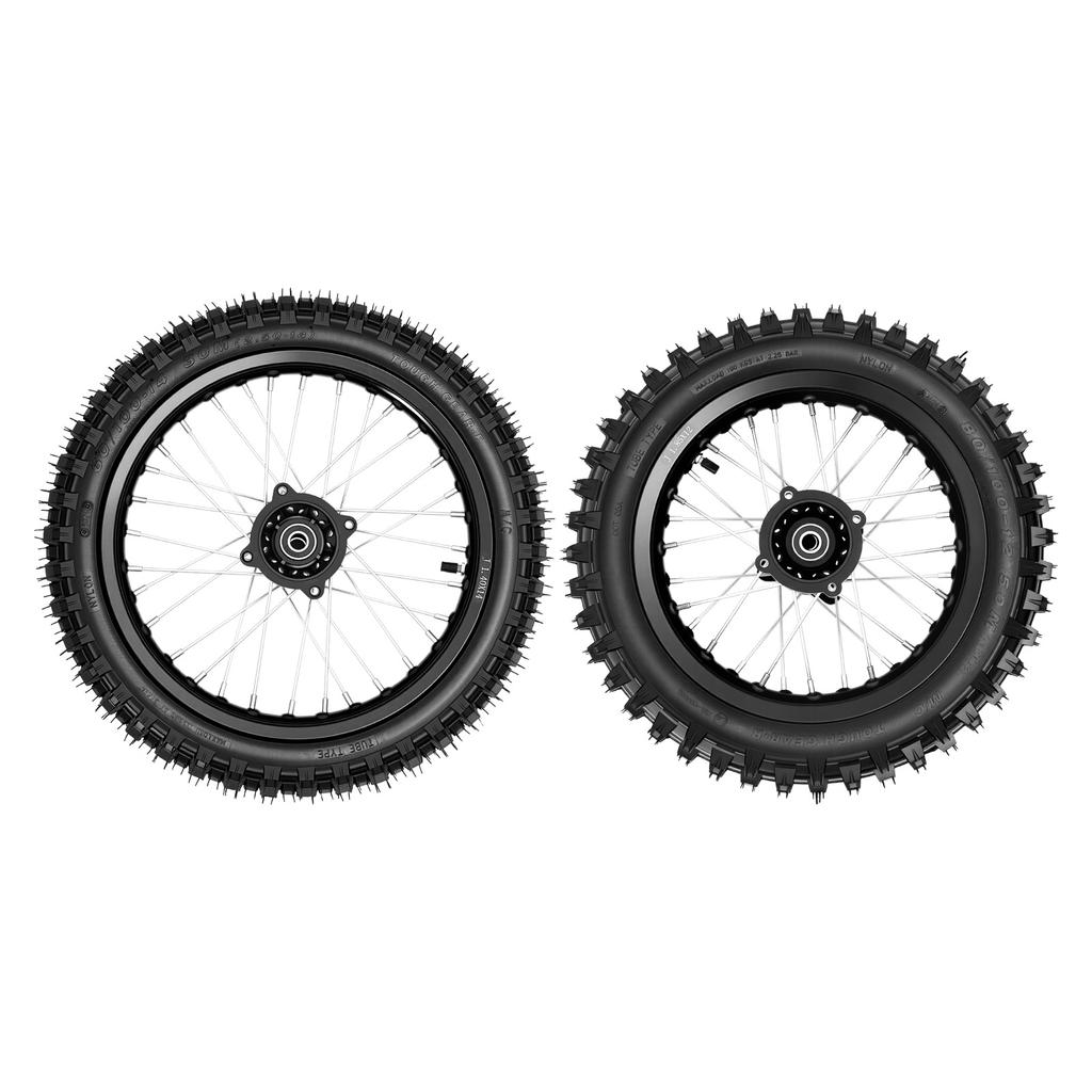 80/100-12 60/100-14 Motorcycle Tires Wheels Set, High-Grip Rubber with Aluminum Rim for Pit Dirt Bike, 200kg Load, 2-Pc Combo