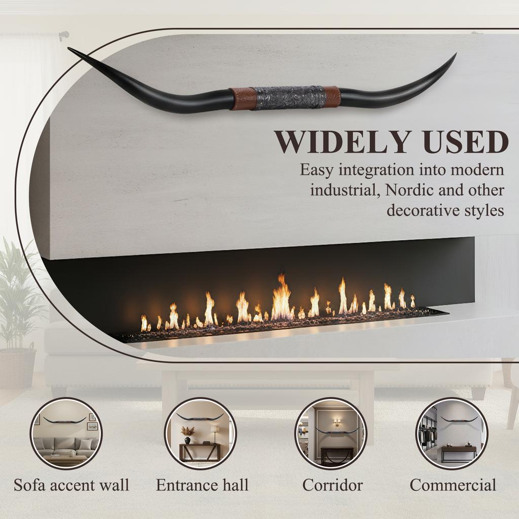 70.8In 180CM Retro Ethnic Style Animal Horn with Hanging Hole Wall Hanging Ornament Multi-Purpose for Living Room Hallway Office