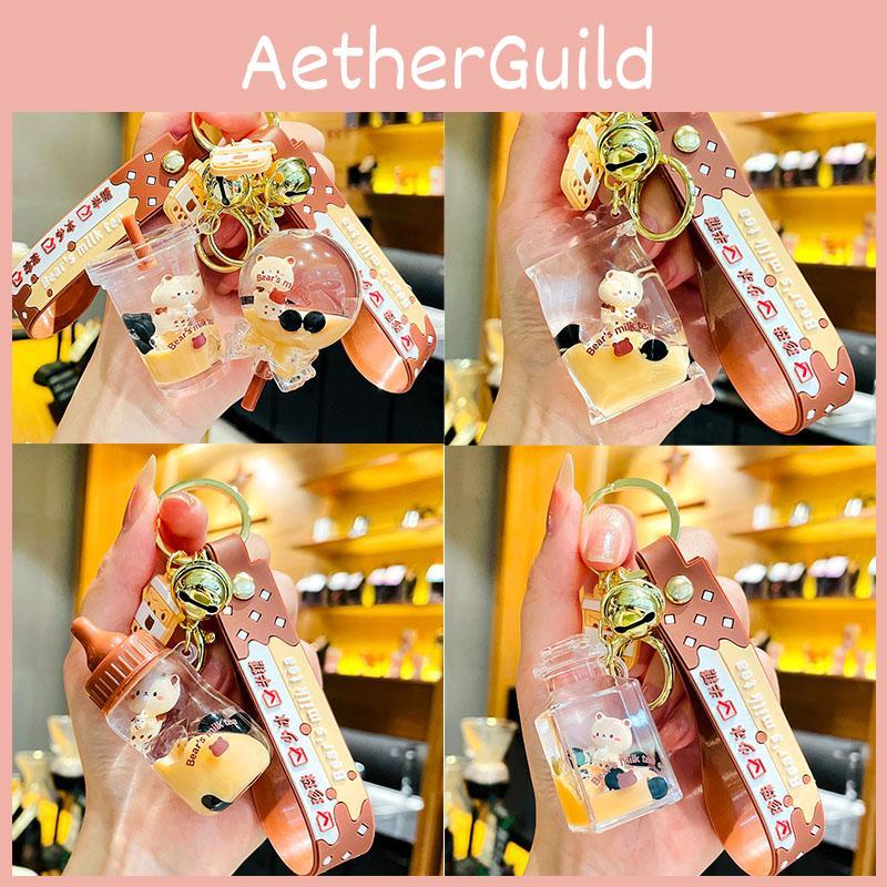 Unique Floating Bear Milk Tea Cup Keychain Adorable Acrylic Keychain Perfect For Travel Souvenirs