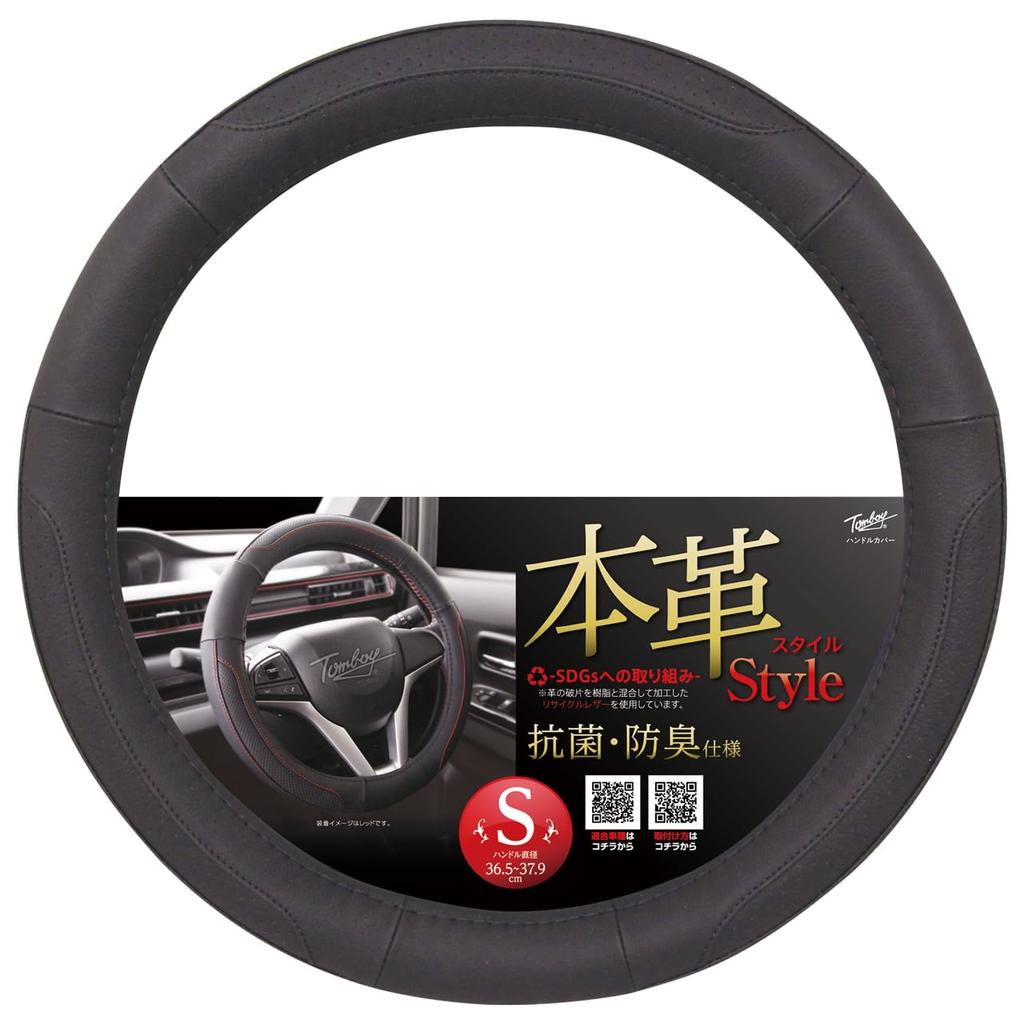 Nishiki Sangyo Tomboy Steering Wheel Genuine Recycled Genuine Leather Size Cover, Leather, Leather, Look, Antibacterial, Black, Small, GL-9250