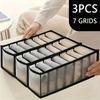 3pcs Foldable Storage Box with 7 Compartments, Suitable for socks, Underwear, and Jeans - Drawer Organizer for Wardrobe