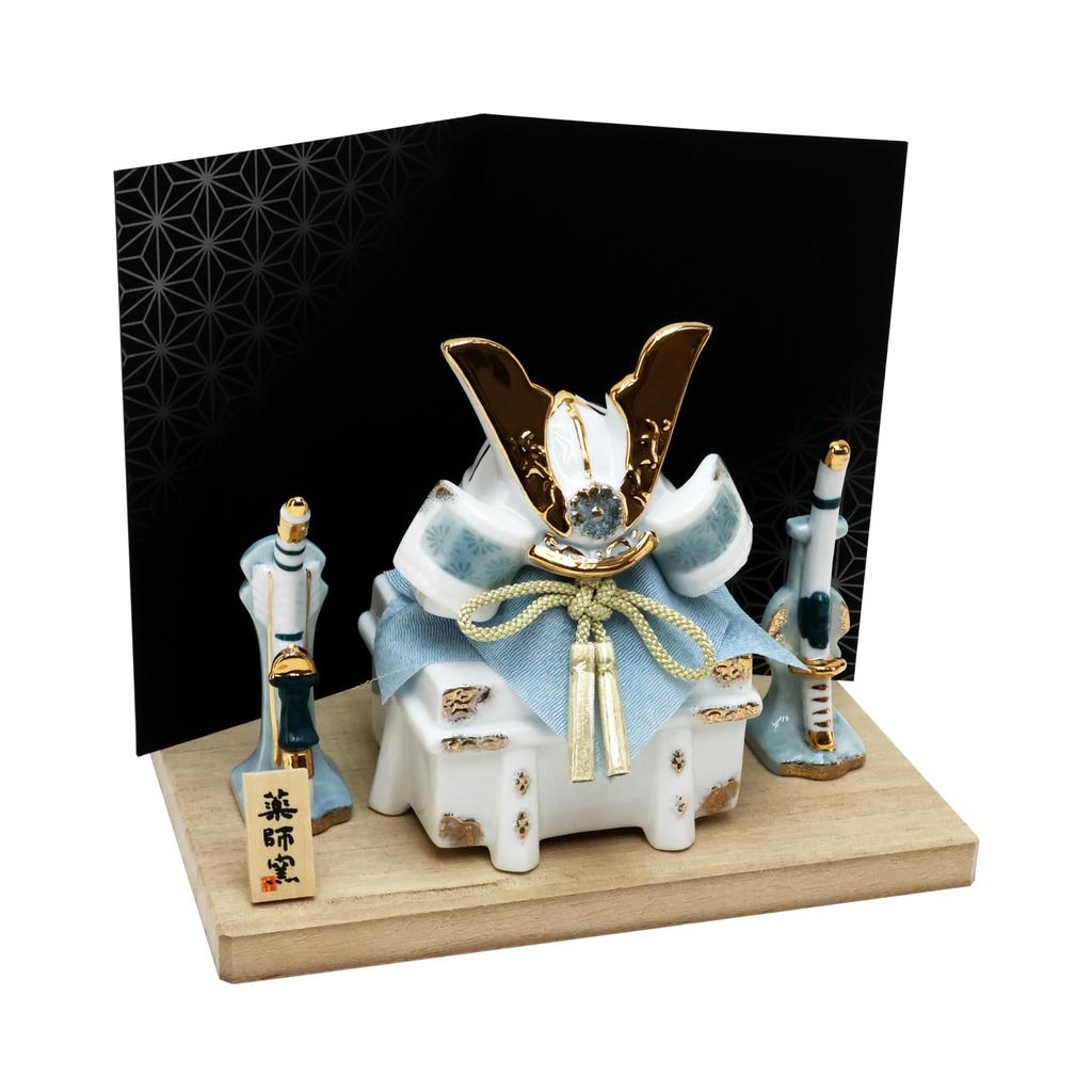 Osaka Choseido May Doll Helmet Compact Mini Day Success White and with Black Screen Ornament, Helmet, Boys' Ceremony, Ceramic, Helmet, Indigo,