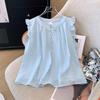 Plus Size Flutter Sleeve French Ruffle Doll Shirt - Women's Summer Loose & Slimming Top