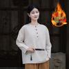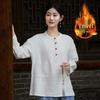 Women's Retro Chinese Style Patchwork Top: Cotton Linen with Fleece, Stand Collar, and Frog Button