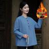 Women's Retro Chinese Style Patchwork Top: Cotton Linen with Fleece, Stand Collar, and Frog Button — cumpără ieftin în cadrul magazinului online Joom