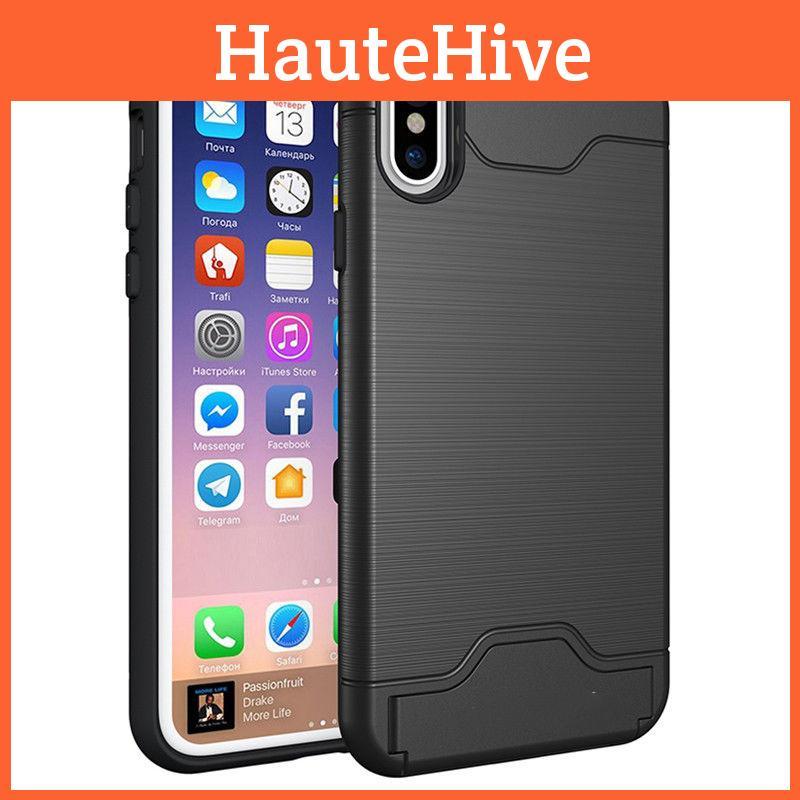 Kickstand Card Pocket Armor Hybrid Cover Case For Iphone X 8 6 6s 7 Iphone8 Plus