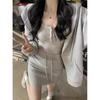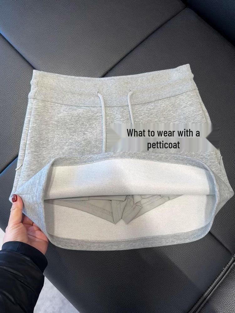 2026 Spring Korean Style Women's Gray Sporty High Waist Skirt - Casual Hip Wrap Sweatshirt Dress