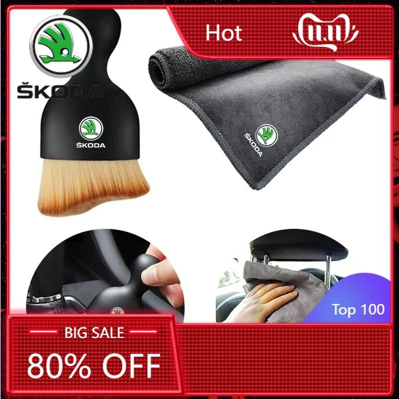 Car Sticker 2025 New Car Interior Cleaning Soft Brush Tool Dust Remover & Double-sided Auto Cleaning Cloth For Skoda Octavia SUP
