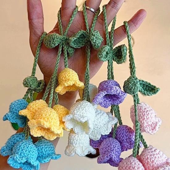 Keychain Pendant Tulip Flower Design Handwoven Yarn Crochet Key Chain Adjustable Rearview Mirror Hanging Car Decoration — cumpără ieftin în cadrul magazinului online Joom