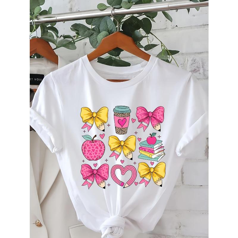 European Size Women'S Valentine'S Day Teacher Apparel T-Shirt - Cute Cup, Hearts, Apples — cumpără ieftin în cadrul magazinului online Joom