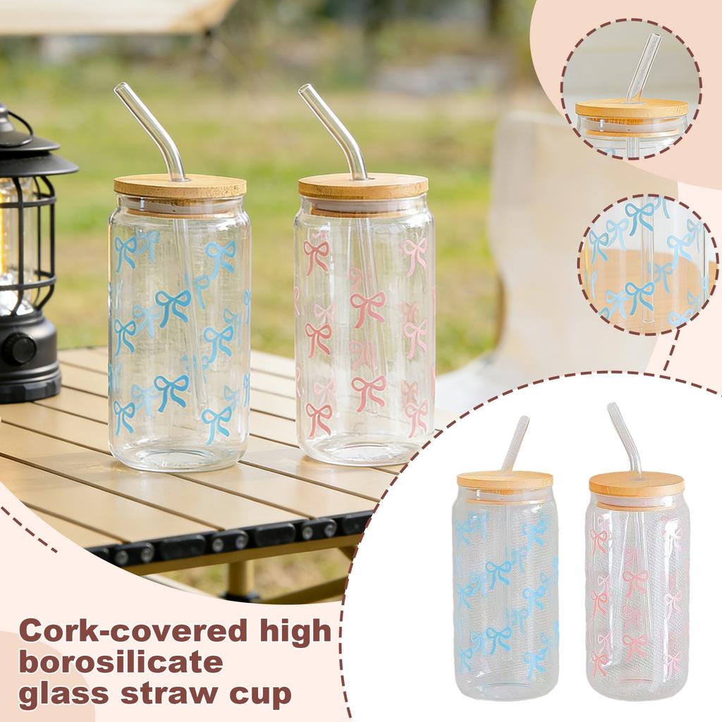 16oz Borosilicate Glass Tumbler With Lid & Straw - Stylish Transparent Cup (Cute Bowknot Design) For , Drinks & Juices