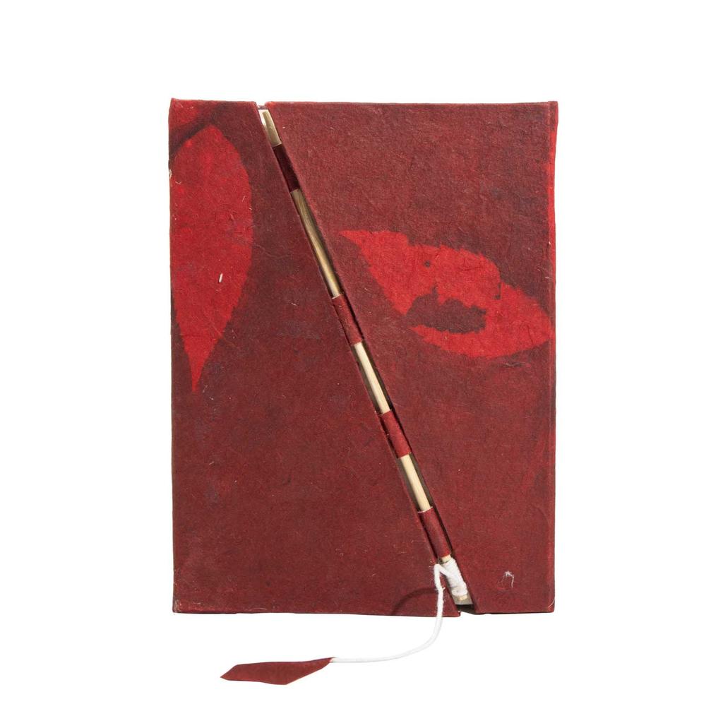 Lokta Bold Floral Bamboo Lock Notebook – Medium (15x12cm) – 45 Leaves – Ruby