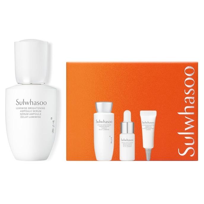 Reveal a luminous, glass-skin complexion with the Sulwhasoo Lumiwise Brightening Ampoule Serum Special Set. This concentrated treatment is powered by White Ginseng Saponin to effectively target dark spots, dullness, and uneven skin tone while providing deep hydration. This luxury set includes a full-sized ampoule serum and essential trial sizes of the Lumiwise line, offering a complete brightening ritual that rejuvenates and revitalizes your skin from within.