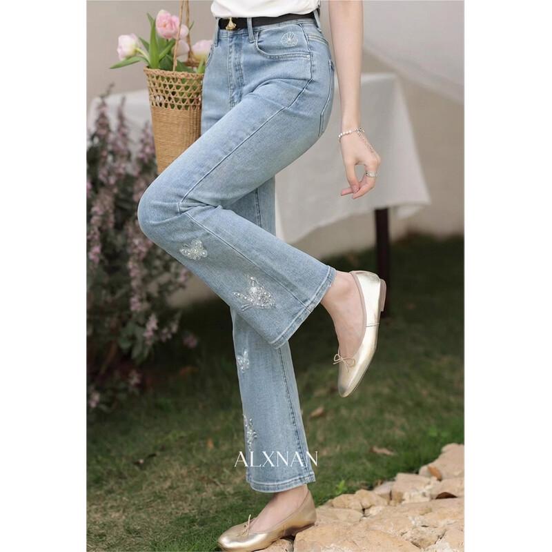 Women's Blue Butterfly Embroidery Draped Slim Fit Jeans — cumpără ieftin în cadrul magazinului online Joom
