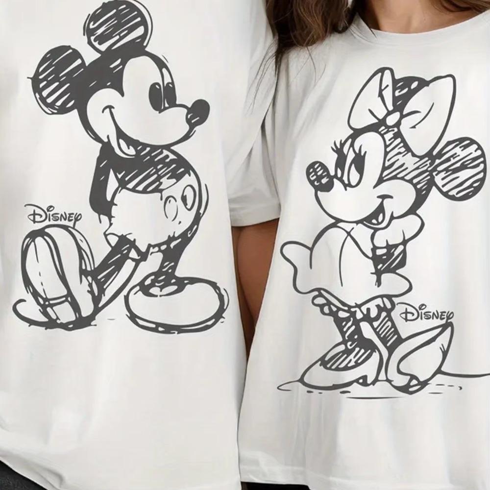 Mickey Mouse Minnie Couple Summer TShirt Casual Animation Comfortable Short Sleeve Unisex Women Breathable and Soft Cotton