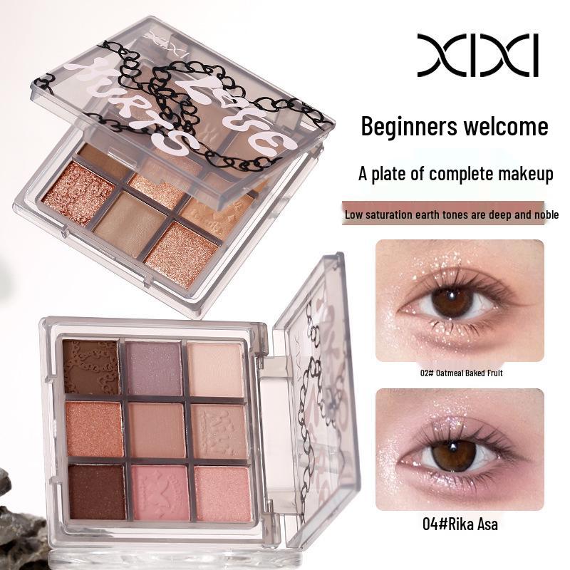 Xixi Smoky Pink Nine-Color Eyeshadow Palette: Pearlescent Shimmer in Milk Tea, Nude Brown, and Earth Tones for Beginners