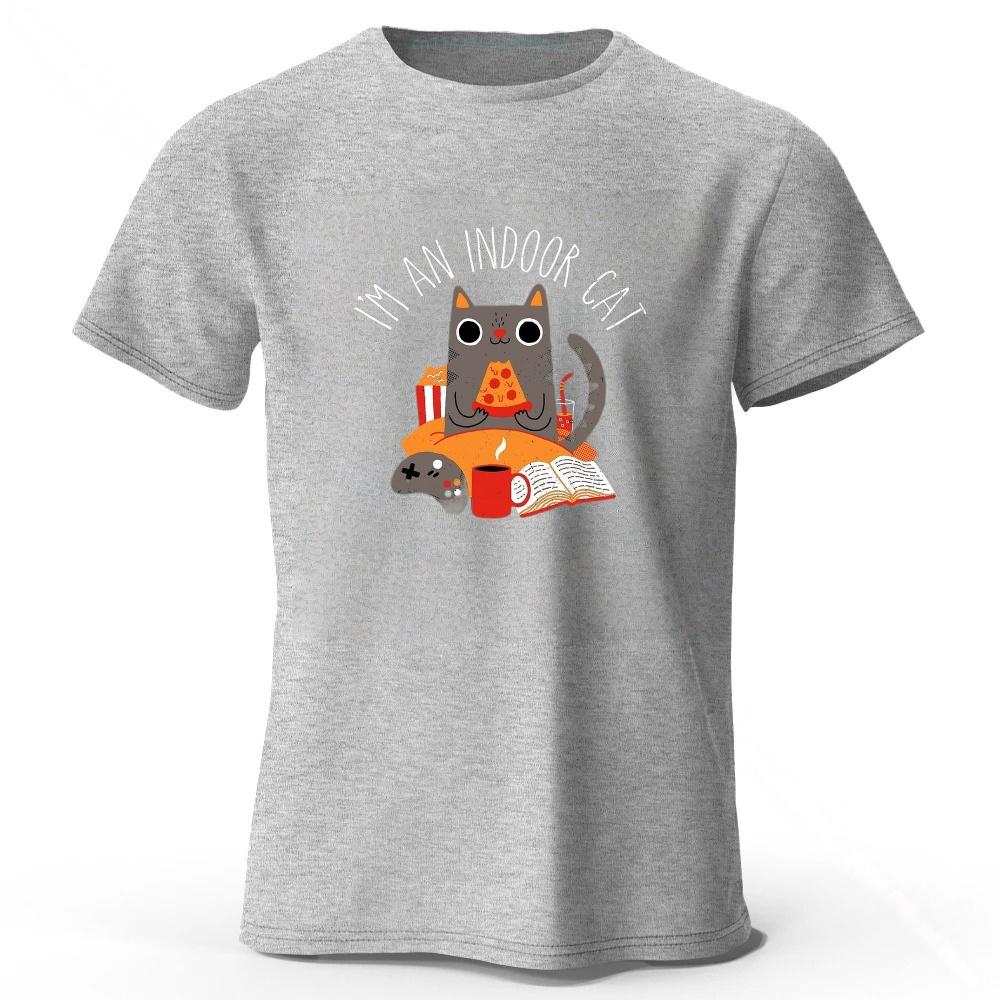 Home Style Pizza Cat Print Pure Cotton Short Sleeved Shirt Summer Menswomens Street Casual Trend Tshirt Large Size Loose Top