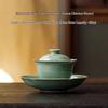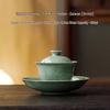 Guanlan Yue Celadon Ceramic Non-Scalding Gongfu Tea Bowl Set - Three-Piece Lid Bowl with Shadow Carving