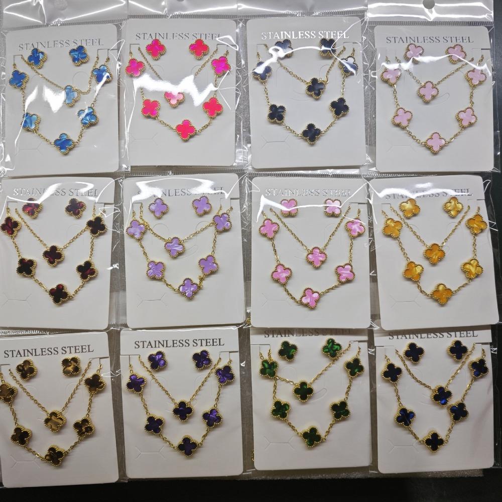 Set Nou de Bijuterii din Oțel Titanic – Colier, Cercei Trifoi cu Patru Frunze și Brățară cu Cinci Flori – Un Set de Bijuterii de Nișă High-end — cumpără ieftin în cadrul magazinului online Joom