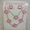 Set Nou de Bijuterii din Oțel Titanic – Colier, Cercei Trifoi cu Patru Frunze și Brățară cu Cinci Flori – Un Set de Bijuterii de Nișă High-end