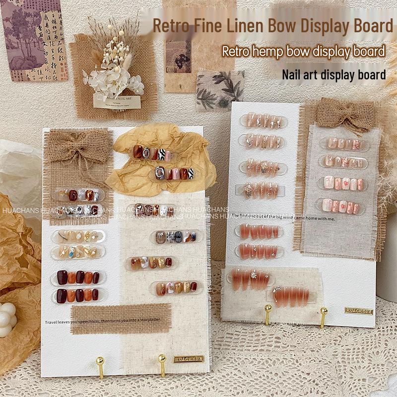 Original Handmade Retro Nail Art Display Board with Burlap Bow and Wearable Nails Pattern. — cumpără ieftin în cadrul magazinului online Joom